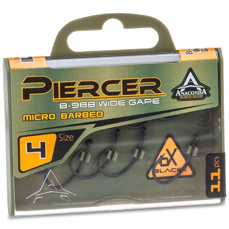 Anaconda Piercer Angle Wide Gape Micro Barb je háček s vynikajícími vlastnostmi pro zaseknutí ryby díky hranatému tvaru, který zaručuje perfektní uchycení v ústech kapra. Ostrý hrot (chemicky broušený) a mikroprotihrot zajistí spolehlivý zásek i těch nejopatrnějších kaprů. Široký oblouk háčku uchopí velkou část tkáně, což zvyšuje pravděpodobnost úspěšného zdolání ryby. Tento háček je ideální volbou pro lov s tvrdšími vlasci (hard mono) a pro cílení na mimořádně velké kapry. Dodávány v praktickém boxu, který přesně zapadne do krabiček Rig Maker’s Case a Rig Maker’s Elements.