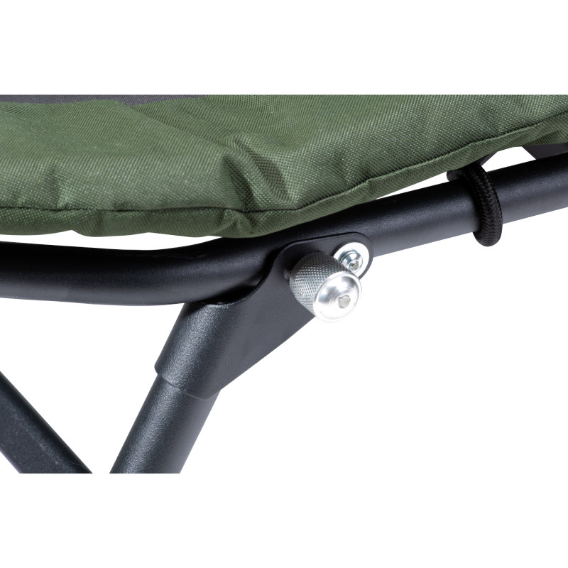 Křeslo Prime Carp Chair je komfortní, velmi pohodlné a se silnou kontrakcí, která zajištuje vysokou pevnost. Díky inovativní technologii „Quick-Push-Technology“ s takzvanými patentkami lze nohy rychle a bezpečně nastavit stisknutím tlačítka, takže můžete sedět téměř v jakémkoli terénu. Čalouněný sedák a úhlově nastavitelné opěradlo doplňují pohodlí tohoto nádherného kaprářského křesla.
