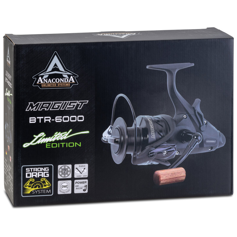 Naviják s volnoběžkou Magist BTR 6000 je nyní k dispozici jako limitovaná edice. Oproti normálnímu Magistu zde naleznete dřevěný konec kličky a vylepšená kuličková ložiska. Balení obsahuje dva navijáky v pevném, elegantním kufříku s polstrováním a přesnými výřezy a exkluzivní otvírák na lahve. Navijáky se hodí pro lov na řece nebo na středně velkých jezerech. Volnoběžka je jemně nastavitelná, přední brzda funguje velmi spolehlivě. Brzdná síla navijáku je fenomenální a umožní vám rychle navést vaši vysněnou rybu do podběráku.