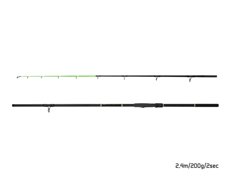Výrazně kónicky tvarovaný blank prutu je vyroben z hustě vrstvených uhlíkových vláken, která dodávají vysokou pevnost a odolnost potřebnou při souboji se silnými říčními rybami. V koncové části blanku je výrazná špička ve fluo zelené barvě, která umožňuje snazší detekci záběru a vylaďuje celkovou akci prutu.