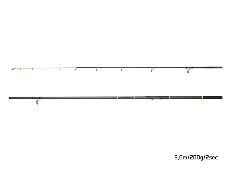 Výrazně kónicky tvarovaný blank prutu je vyroben z hustě vrstvených uhlíkových vláken, která dodávají vysokou pevnost a odolnost potřebnou při souboji se silnými říčními rybami. V koncové části blanku je výrazná špička ve fluo zelené barvě, která umožňuje snazší detekci záběru a vylaďuje celkovou akci prutu.