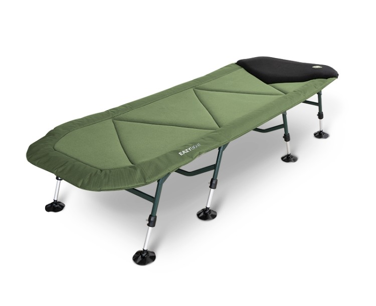 Komfortní osminohé lehátko, při kterém se skloubil excelentní poměr pohodlí, funkčnosti a příznivé pořizovací ceny.Jeho základem je velmi pevná, odolná a zároveň lehká konstrukce zelené barvy, která spolu s osmi nohami dodává lehátku potřebnou stabilitu. Výškově nastavitelné nohy jsou na koncích opatřeny robustními patkami na kulových čepech, což jim umožňuje přizpůsobit se nerovnostem terénu. Pár nohou pod hlavou je navíc opatřen zajišťovacím mechanismem, což usnadňuje rozložení lehátka a zároveň zabraňuje nechtěnému sklápění či posunu.Matrace je z vrchní části tvořena fleecovým materiálem s efektním prošíváním, čímž je velmi pohodlná, hřejivá a designově originální. Kromě toho je po obvodu opatřena odolnou 600D látkou zelené barvy, která přispívá k prodloužení životnosti produktu. Pro maximální pohodlí je ve vrchní, hlavové části extra polstrovaný fleecový panel.Tuhost matrace lze nastavit v části nohou a hlavy dotažením pevného lana, které je vedeno spodními okraji.Pokud tedy hledáte pohodlné lehátko za rozumnou cenu, určitě byste se měli poohlédnout právě po modelu EazyEIGHT8.