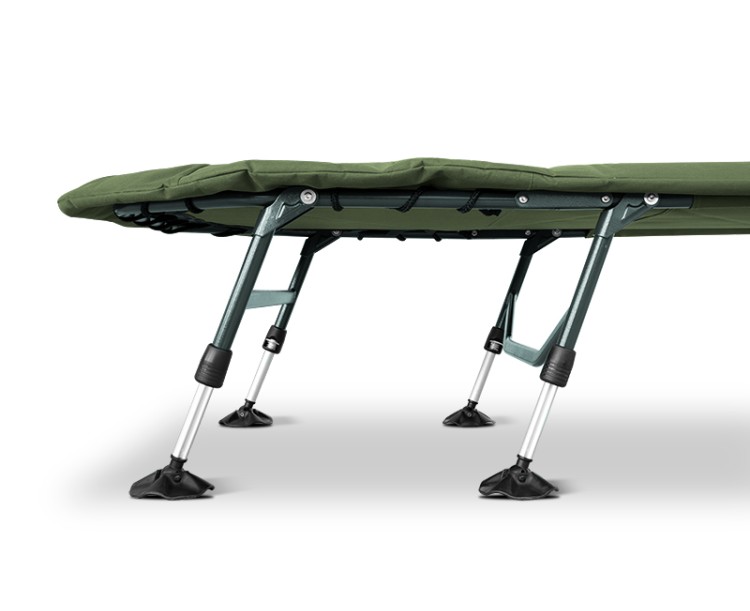 Extrémně lehké, velké a 100% ploché lehátko ve velice atraktivním designu s digitálním maskováním. Nadstandardně silná a velmi komfortní matrace s fleecovou vrchní vrstvou nabízí nejúčinnější systém regulace tuhosti pomocí elastického šněrování na spodní straně. Další výhodou jsou nohy s rozměrnými výkyvnými patkami a možností velkého vysunutí. Lehátko je dostupné ve variantě s osmi nebo se šesti nohami. Technické parametry: Hmotnost: 9,54 kg Nosnost: 160 kg Transportní rozměr: 90 x 80 x 30 cm Počet nohou: 8 Rozměr: 205 x 80 cm
