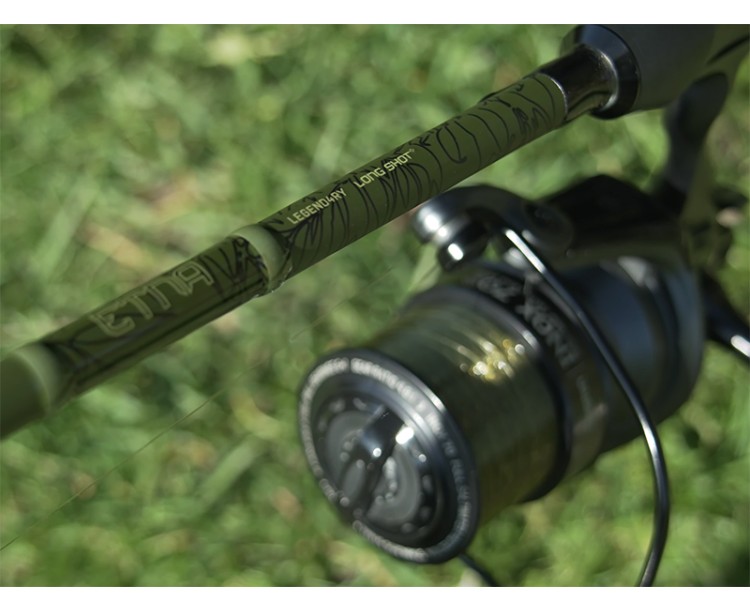 Minimalistická rukojeť je po celé délce opatřena Shrink materiálem, čímž je příjemná na dotek za každých povětrnostních podmínek a vytváří ideální protiskluzový povrch.Verze CAMO LongSHOT+ se také výrazně odlišuje od klasické ETNY svým designem sestávajícím z matného tmavě zeleného blanku doplněného o kamuflážovou grafiku nad sedlem navijáku. Díky tomu prut dokonale splyne s okolní přírodou a zároveň se odliší od ostatních prutů běžně dostupných na trhu.