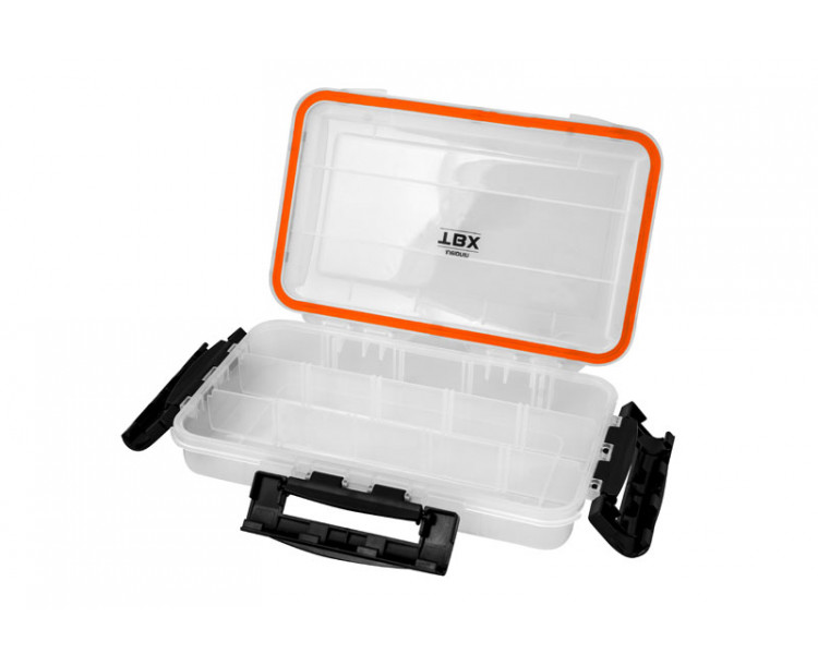 TBX ONE Clip WP je řada multifunkčních krabiček určených pro uložení rybářského příslušenství. Vyrobena je z transparentního plastu, takže máte vždy přehled o uložených věcech uvnitř krabičky. Vybavená je praktickými externími klipy z plastu a těsněním oranžové barvy.