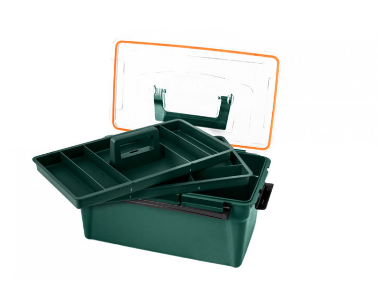 Kufřík Delphin TBX Case Clip je menších rozměrů, ale rozhodně praktičností nezaostává za těmi většími, které máme v nabídce. Skládá se ze tří odkládacích prostorů, z toho dva jsou vyjímatelné s praktickým úchopem. Celý kufřík je pevně fixován podélnými klipy v počtu 3ks, které zaručí bezpečnou přepravu nástrah nebo ostatního rybářského příslušenství. Je dodáván v tmavozelené barvě s transparentním víkem, které je vybaveno červenou těsnící gumou po celém jeho obvodu.