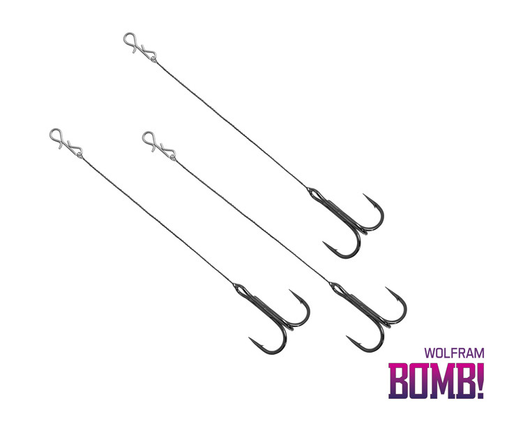 Hotové přívlačové návazce Twisto RIGS Wolfram jsou zhotoveny z wolframového lanka s nosností 15kg a kvalitního trojháčku od firmy Mustad. Nejkratší, 8cm návazec má trojháček velikosti 6. Tento typ je velmi vhodný na menší nástrahy. Středně dlouhý, 10cm návazec obsahuje trojháček velikosti 4. Nejdelší návazec z této série má 12cm a osazen je háčkem č. 2.