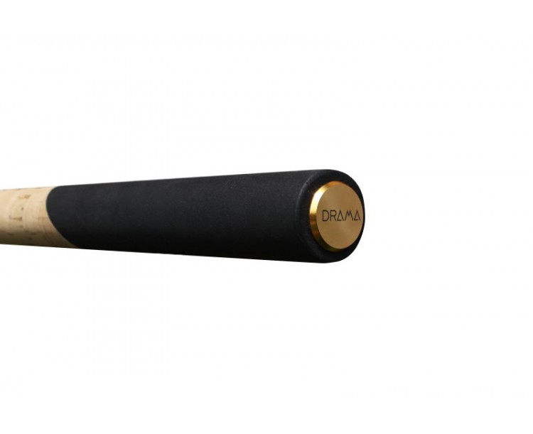 Drama je velmi elegantním match prutem, který vás svojí čistotou a dokonalým zpracováním uchvátí od první chvíle. Příjemně štíhlý blank, který je charakteristický svojí plně parabolickou akcí, vám dovolí dávkovat sílu během zdolávání doslova na milimetry. To je pro tuto jemnou rybolovnou techniku mimořádně důležité. Přesné rozestavění oček ve spojení s použitým uhlíkem 24T garantují dokonalé vyvážení tohoto nádherného prutu. Rukojeť Dramy je velmi komfortní. Místa, která jsou nejčastěji ve styku s rukama, jsou vyhotovená z odolné a lehko čistitelné EVA pěny. Mezikus mezi nimi je zase vytvořený z korku, což vytváří dokonalý efekt luxusu na této rukojeti. Drama se nese převážně v kombinaci černé a zlaté barvy, což dojem z prutu ještě násobí. Už od prvopočátku, když byla Drama ještě jen skicou, jsme byli přesvědčeni, že tento prut po prvním kontaktu už nedáte z ruky!