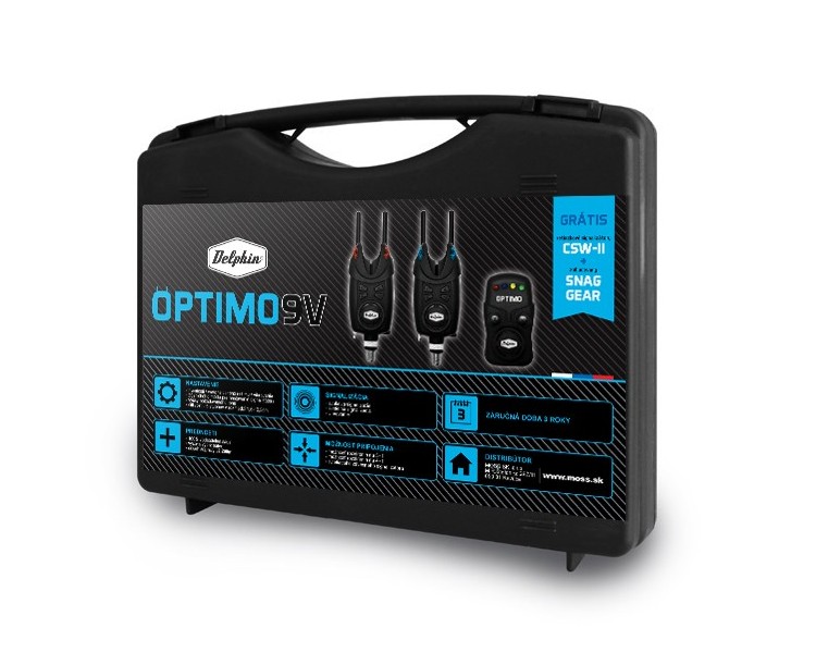 Sada Delphin OPTIMO navazuje na enormní úspěch sad od značky Delphin. Tato sada poskytuje možnost světelné, zvukové i vibrační signalizace. Je 100% voděodolná a signalizátory jsou napájeny 9V bateriemi, což zaručuje dlouhou životnost. Přijímač je napájen 3xAAA bateriemi. Kromě vysoké výdrže patří mezi největší devizy této sady dosah- až 200 metrů v závislosti na okolních podmínkách! Snag Geary je možné šroubovat přímo na závity, které se nacházejí na těle signalizátoru, což jednoznačně usnadňuje manipulaci. Při nastavování sady na lovném místě určitě oceníte i 20 sekund trvající tichý mód, během kterého můžete se signalizátory manipulovat bez vydávání tónů. Další možností je nastavení až 6 stupňů citlivosti záběru v rozmezí 1,5-10,5cm. Signalizátory mají 2 hlavní režimy- denní a noční. Při nočním je samozřejmostí svícení poziční diody. Signalizátory mají možnost nastavení tichého režimu a rozeznávají zpětný záběr. Sada Delphin OPTIMO 9V je tím pravým pro opravdové kapraře!