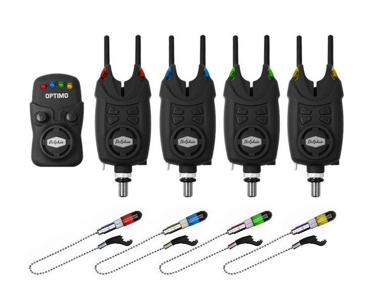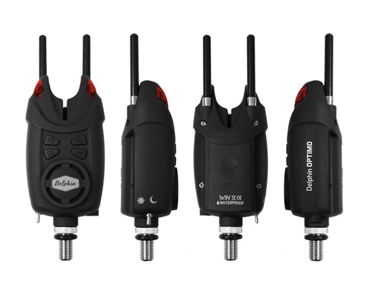 Sada Delphin OPTIMO navazuje na enormní úspěch sad od značky Delphin. Tato sada poskytuje možnost světelné, zvukové i vibrační signalizace. Je 100% voděodolná a signalizátory jsou napájeny 9V bateriemi, což zaručuje dlouhou životnost. Přijímač je napájen 3xAAA bateriemi. Kromě vysoké výdrže patří mezi největší devizy této sady dosah- až 200 metrů v závislosti na okolních podmínkách! Snag Geary je možné šroubovat přímo na závity, které se nacházejí na těle signalizátoru, což jednoznačně usnadňuje manipulaci. Při nastavování sady na lovném místě určitě oceníte i 20 sekund trvající tichý mód, během kterého můžete se signalizátory manipulovat bez vydávání tónů. Další možností je nastavení až 6 stupňů citlivosti záběru v rozmezí 1,5-10,5cm. Signalizátory mají 2 hlavní režimy- denní a noční. Při nočním je samozřejmostí svícení poziční diody. Signalizátory mají možnost nastavení tichého režimu a rozeznávají zpětný záběr. Sada Delphin OPTIMO 9V je tím pravým pro opravdové kapraře!