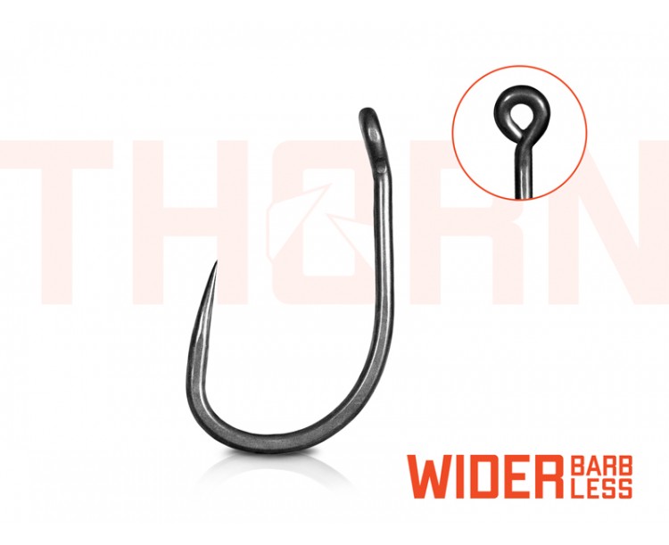 THORN Wider BarbLESS je specifický svým přímo již legendárním tvarem typu wide gape. Jde o háček charakteristický širším obloukem a rovným ramínkem. Díky těmto parametrům jde o velmi univerzální a spolehlivý háček, který je možné využít při různých návazcích a nástrahách. V tomto případě háček nedisponuje protihrotem, díky čemuž pronikne do kapří tlamy mnohem snadněji.Technický parametr:háček osově rovný