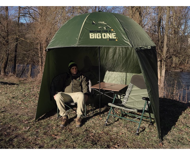 Deštník disponuje kloubem pro nastavení sklonu kopule, díky čemuž se umíte lépe chránit proti slunečním paprskům ale i větru. Deštník s bočnicí Delphin BigONE CARP je všestranným, praktickým deštníkem, který vám umožní užívat si naplno volné chvíle u vody za každého počasí.