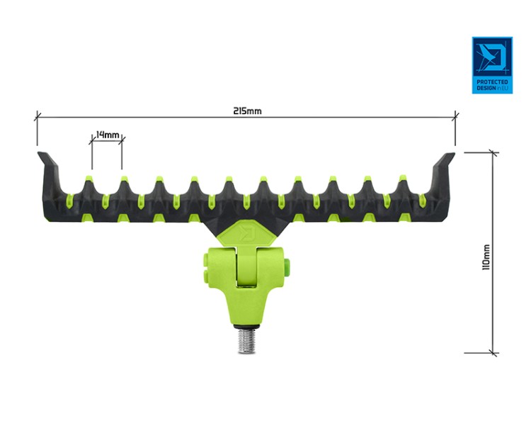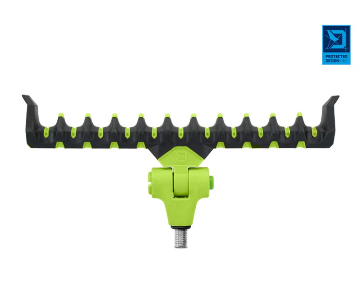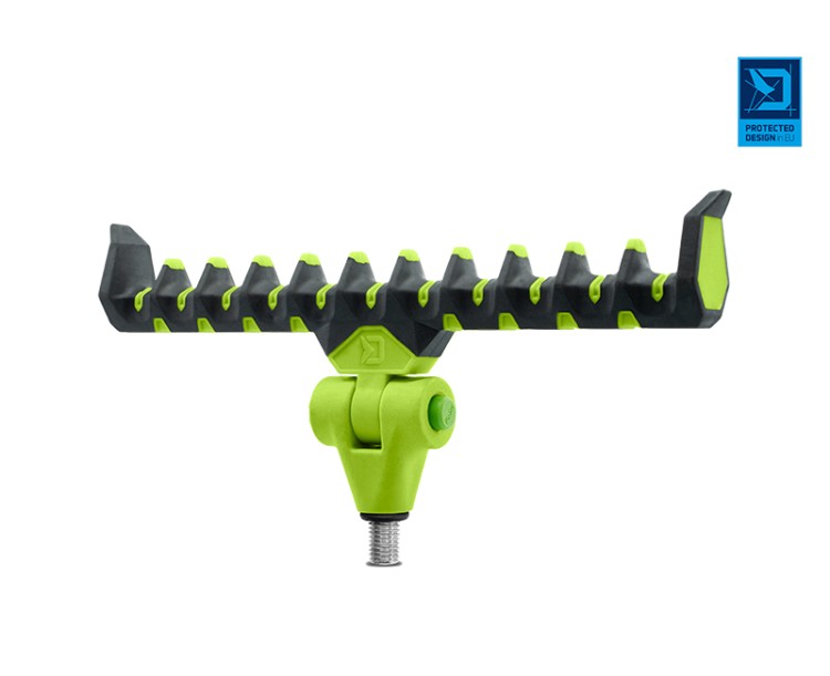 Díky dostatečné šířce umožňuje upravit polohu prutu po nahození a tak docílit optimálního ohybu špičky bez potřeby nadměrného navíjení vlasce zpět na cívku navijáku. Držák je vyroben z odolných materiálů, takže se snadno nepoškodí a nepoškrábe. Jeho speciálně navržený tvar poskytuje dokonalou podporu prutu a zabrání jeho vysmeknutí i při razantních záběrech.