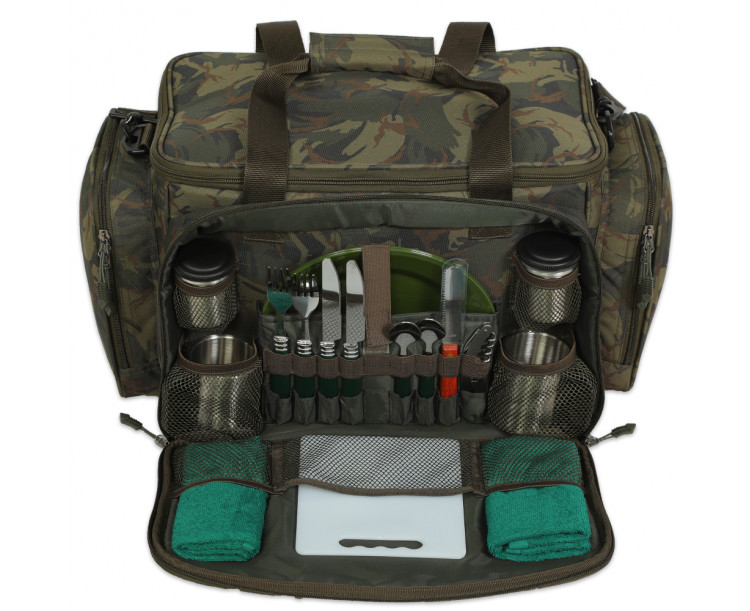 Cestovní jídelní taška, která obsahuje vše potřebné pro gurmánské zážitky u vody a v přírodě. Obsahuje talíře, příbory, hrnky a jiné potřebné věci ke stolování a hlavní část tašky je termo izolační pro uchování potravin v chladu.