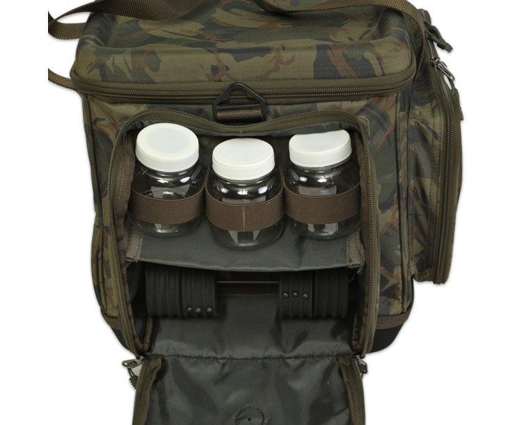 Praktická multifunkční kaprařská taška, která obsahuje krabičky na doplňky, návazce a nádoby na nástrahy.