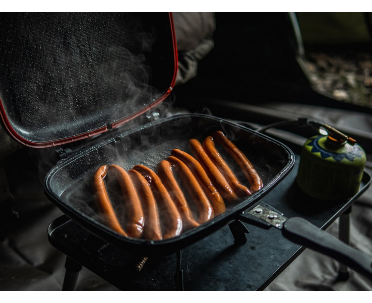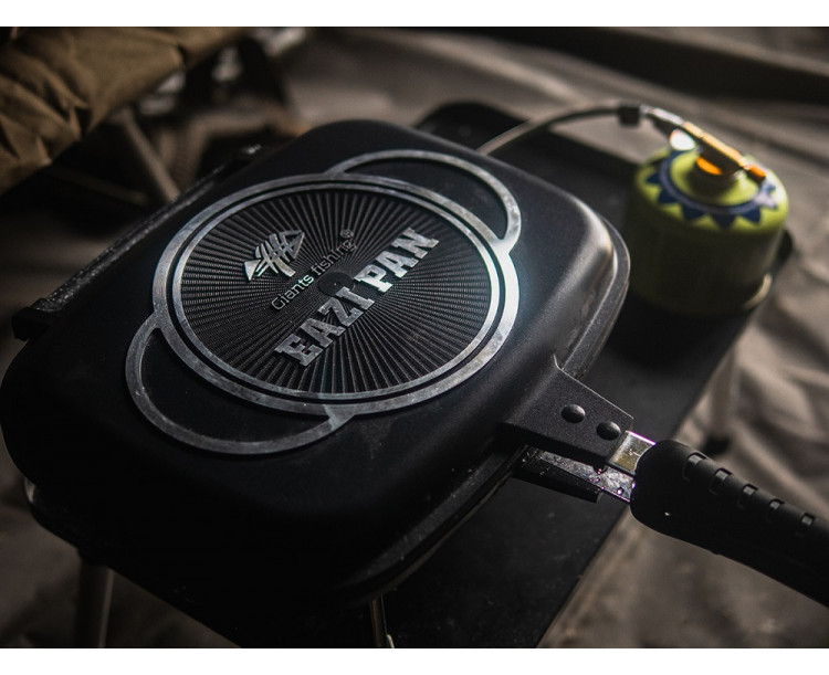 Oboustranná pánvička od Giants fishing s nepřilnavým povrchem Non-Stick , silikonovým těsněním a v krásném designu, je důležitou součástí každého rybáře kuchaře.
