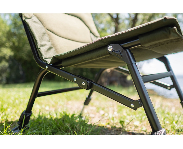 Luxusní verze našeho nejprodávanějšího křesla Comfort Quattro s extrémně pohodlnou fleecovou matrací v moderním designu CamoCODE. Využívá oblíbený a naprosto spolehlivý systém sklápění opěradla při nadzdvihnutí opěrek rukou. Je postaveno na extrémně lehkém a pevném hliníkovém rámu s nosností 160 kg. Křeslo je vybaveno nově navrženými patkami proti zaboření a novými zámky aretace nohou v unikátním designu Mivardi. Čtyři samovýsuvné teleskopické nohy lze ovládat jednoduchým stisknutím páčky aretace.