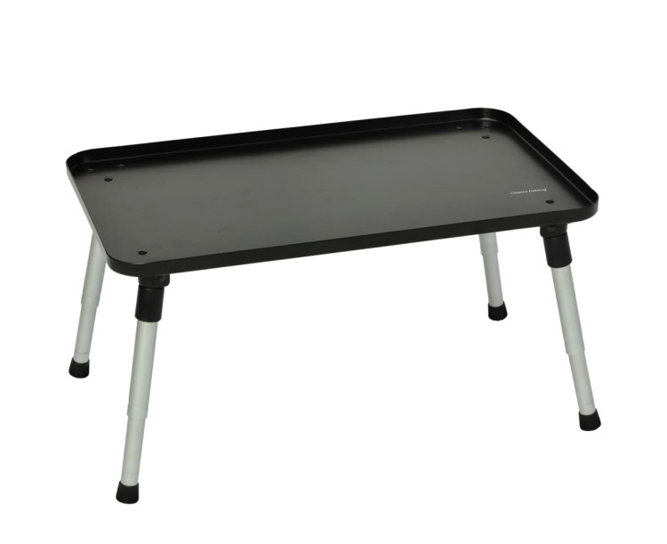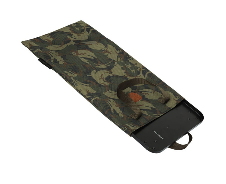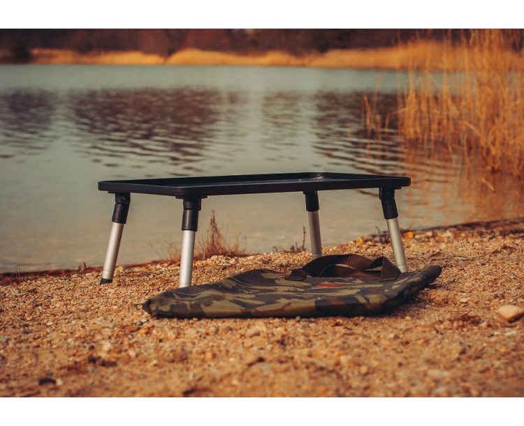 Stolek do přístřešku hliníkové konstrukce černé barvy, který je dodáván včetně nepromokavého obalu v atraktivním maskáčovém designu.Vhodný pro odkládání často používaných věcí při rybaření.