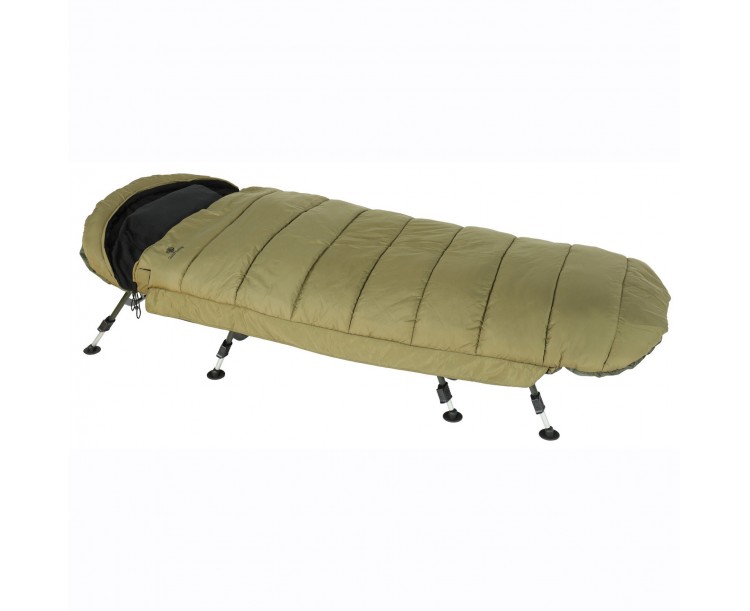 Tento spací pytel byl velmi pečlivě vyvíjen a byly na něj použity ty nejlepší a nejmodernější materiály.Na vnější vrstvu, byl použit velmi příjemný a nešustící materiál „ Peach Skin “ broskvová kůže. Tento materiál má tyto vlastnosti, je nepromokavý a dýchatelný. Plně prošívaný microfleece černé barvy a vyplněn 100% dutým vláknem pro extrémní teplo a komfort.Pod hlavou je na zip odnímatelný polštářek, který zajistí opravdový komfort. Ve vnitřní části spacího pytle naleznete kapsu na zip, která je určena pro mobilní telefon. Na obou stranách spacího pytle (u hlavy a nohou) jsou ze spodu našité převleky, které se pouze přetáhnou přes vršek a spodek lehátka a zajistí tak neomezený a bezpečný pohyb. Ve střední části spacího pytle je popruh, který se díky přezce snadno upevní k lehátku a zabrání kroucení spacího pytle. Nově jsou u tohoto modelu překryty boční zipy z vnější strany, aby se zabránilo nežádoucímu úniku tepla. Spací pytel je dodáván s přenosnou taškou.