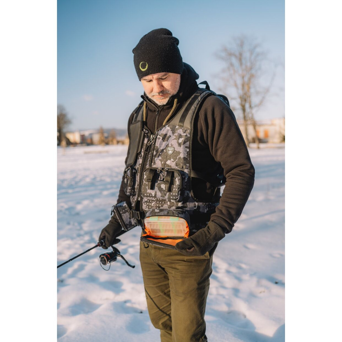 Speciální vesta pro lov přívlačí, která osahuje vše potřebné a v zadní části máte dokonce menší úložný prostor pro osobní věci a oblečení. Dvě přední kapsy jsou odnímatelné a obsahují krabičky na nástrahy.