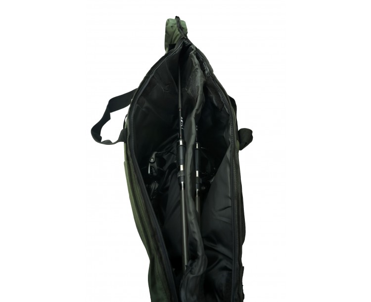 Nová série dvoukomorových obalů na trojdílné nebo dvojdílné kaprové pruty s kompletním polstrováním, vyrobená z pevného a nepromokavého materiál B-POL600D. Obal je vybaven přepravními uchy i polstrovaným ramenním popruhem, prostornými kapsami na deštník, vidličky a další příslušenství. Je osazen desénovými táhly zipů MIVARDI. Obal je vybaven speciální kapsou pro vložení výztužné tyče. (tyč není součást obalu)