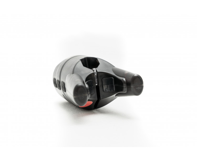 Originální a nezaměnitelný signalizátor záběru se zabudovanou LED diodou a prvky, které tento produkt posouvají o krok vpřed před jiné modely z daného segmentu. Hlava signalizátoru je navržena v jedinečném tvaru kapra. To nepochybně potěší množství příznivců kaprařiny a zároveň se výrazně odliší od všech běžně prodávaných modelů na trhu. Je osazena kuličkovým mechanismem s možností nastavení tlaku pomocí aretačního šroubu. Tím, že mechanismus je tvořen kuličkami, třecí plocha je minimální a proto nedochází ke stlačení vlasce během zasekávání. Hlava je vyrobena z tvrzeného, matného plastu pro zvýšenou odolnost vůči mechanickému poškození. Doslova revolučním přepracováním prošla uchycovací část ramínka signalizátoru, na kterou jsme jako první aplikovali dva důmyslně navržené prvky. Jedná se o obrovskou přednost kompletně navrženou inženýry vývojového oddělení značky Delphin. Prvním z nich jsou zářezy po bocích, které slouží ke snadnému uchycení kablíku během transportu. Díky tomu nebude docházet k nechtěnému motání či zachytávání o jiné komponenty výbavy. Tento prvek označujeme jako CABLE MANAGER. Druhým bonusem je drážka nazvaná ARM STOPPER. Zjednodušeně je to držák na spodní části nohy, plnící dva významné úkoly. První z nich je možnost zajištění kovového ramínka tak, aby po skončení lovu kompaktně drželo spolu s nohou. Největší devizou je však mnohem rychlejší zastavení kývání signalizátoru během záseku. Znamená to, že jakmile zvednete prut a vlasec se uvolní z hlavy, tak se CARPY velmi rychle zastaví ve svěšené poloze. Obvykle to našemu systému trvá jen 3-4 kmity. V porovnání s běžně prodávanými signalizátory, které jste dosud znali, to znamená mnohem větší životnost plastové nohy a kloubu, ve kterém je spojena s kovovým ramínkem. Samozřejmostí je posuvné závaží na kovovém rameni umožňující optimální vyšponování vlasce. Delphin CARPY je osazen konektorem pro zapojení do elektronického signalizátoru záběru. Po zapojení se při záběru rozsvítí vnitřní LED dioda, která vydává tlumené světlo podle barvy hlavy a umožňuje tak sledovat záběr i během noci. Jako bonus je k balení dodáván náhradní držák pro upevnění k elektronickému signalizátoru záběru. V případě ztráty nebo poškození tak máte k okamžité dispozici náhradní držák, bez nutnosti pořizování dalšího. Dostupné barvy hlavy: modrá, červená, zelená, žlutá, fialová, černá.