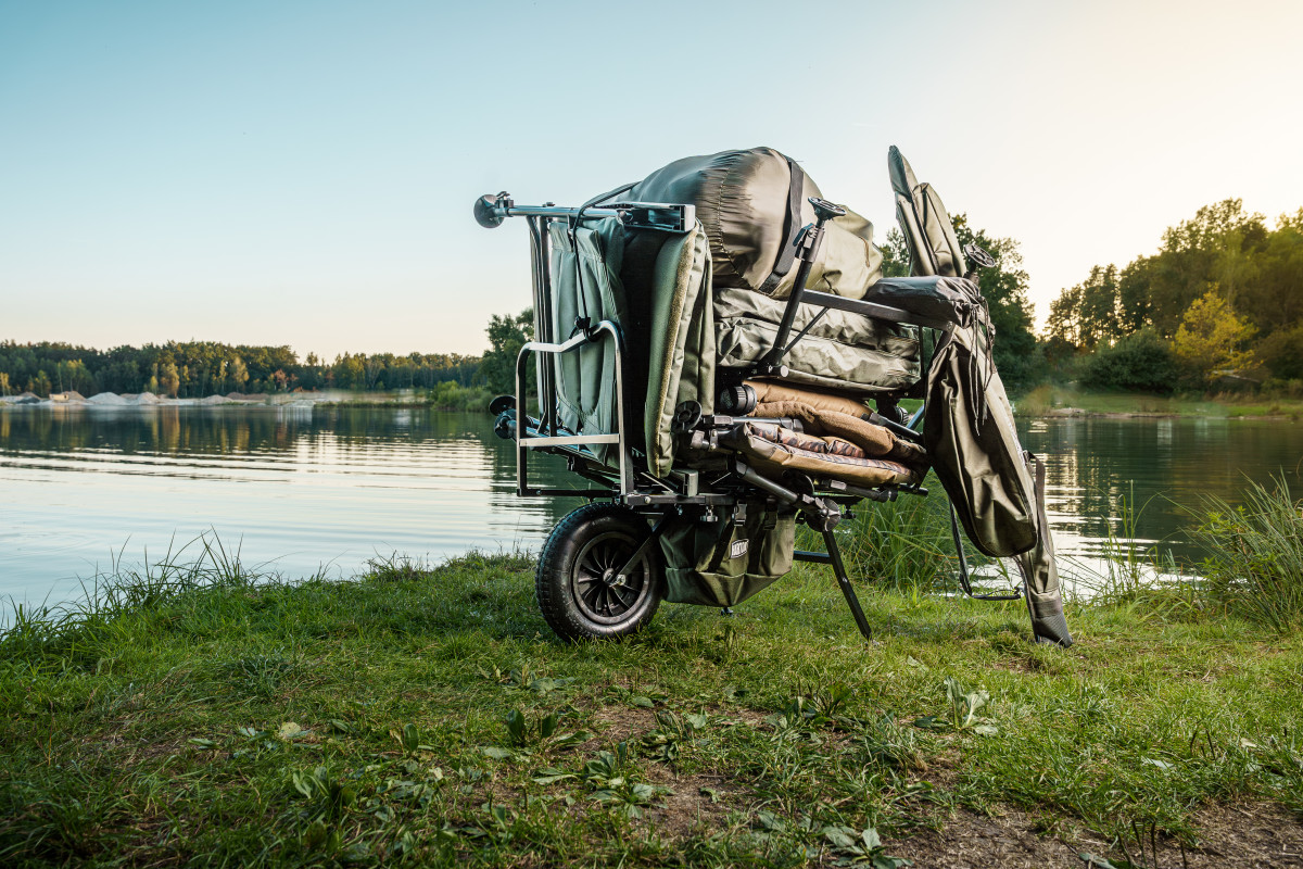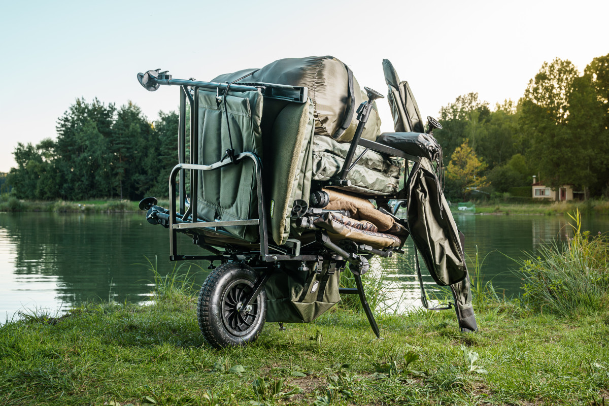 Naprosto stabilní a víceúčelový vozík, který pojme vaše rybářské vybavení. Velké terení kolo umožní překonat i složitější terén jako kořeny a velké kameny. Široký úchop a madla zase zajistí perfektní stabilitu. Vozík je vyroben ze silné oceli a hliníkové konstrukce, což znamené vynikající poměr mezi užitnou nosnosti a vlastní hmotností. Vozík disponuje velkou variabilitou v nastavení velikosti pomocí aretačních šroubů a výsuvných konstrukcí. Velkou předností a dominantou je velká spodní kapsa. Přes vrchol kapsy lze upnout gumová lana pro zajištění nákladu.