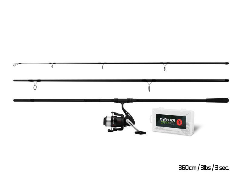Základem je třídílný prut YAKUZA o délce 360cm a parabolickou akcí, která vám dokonale umožní vychutnat si zdolávání i menších kaprů či jiných ryb. Prut má samozřejmě dostatečnou silovou rezervu k tomu, aby si poradil i s kapitálními úlovky, či přesným nahazováním na lovné místo.
