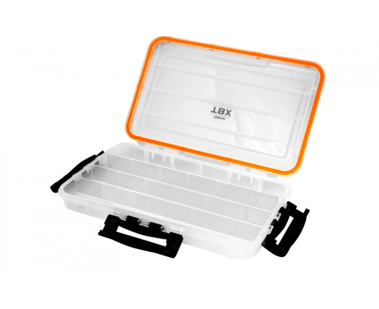 TBX ONE Clip WP je řada multifunkčních krabiček určených pro uložení rybářského příslušenství. Vyrobena je z transparentního plastu, takže máte vždy přehled o uložených věcech uvnitř krabičky. Vybavená je praktickými externími klipy z plastu a těsněním oranžové barvy.