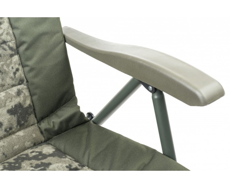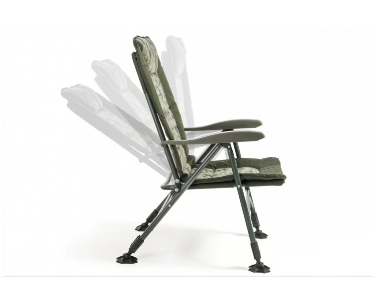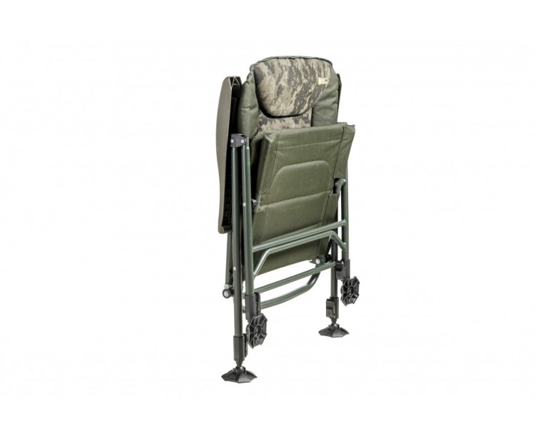 Luxusní verze našeho nejprodávanějšího křesla Comfort Quattro s extrémně pohodlnou fleecovou matrací v moderním designu CamoCODE. Využívá oblíbený a naprosto spolehlivý systém sklápění opěradla při nadzdvihnutí opěrek rukou. Je postaveno na extrémně lehkém a pevném hliníkovém rámu s nosností 160 kg. Křeslo je vybaveno nově navrženými patkami proti zaboření a novými zámky aretace nohou v unikátním designu Mivardi. Čtyři samovýsuvné teleskopické nohy lze ovládat jednoduchým stisknutím páčky aretace.