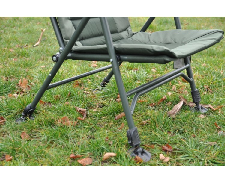 Luxusní verze našeho nejprodávanějšího křesla Comfort Quattro s extrémně pohodlnou fleecovou matrací v moderním designu CamoCODE. Využívá oblíbený a naprosto spolehlivý systém sklápění opěradla při nadzdvihnutí opěrek rukou. Je postaveno na extrémně lehkém a pevném hliníkovém rámu s nosností 160 kg. Křeslo je vybaveno nově navrženými patkami proti zaboření a novými zámky aretace nohou v unikátním designu Mivardi. Čtyři samovýsuvné teleskopické nohy lze ovládat jednoduchým stisknutím páčky aretace.
