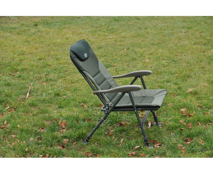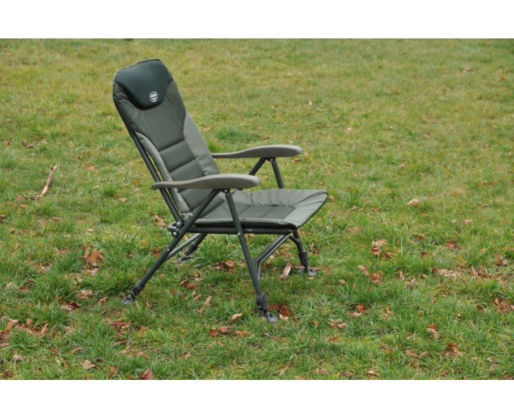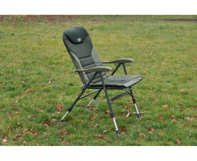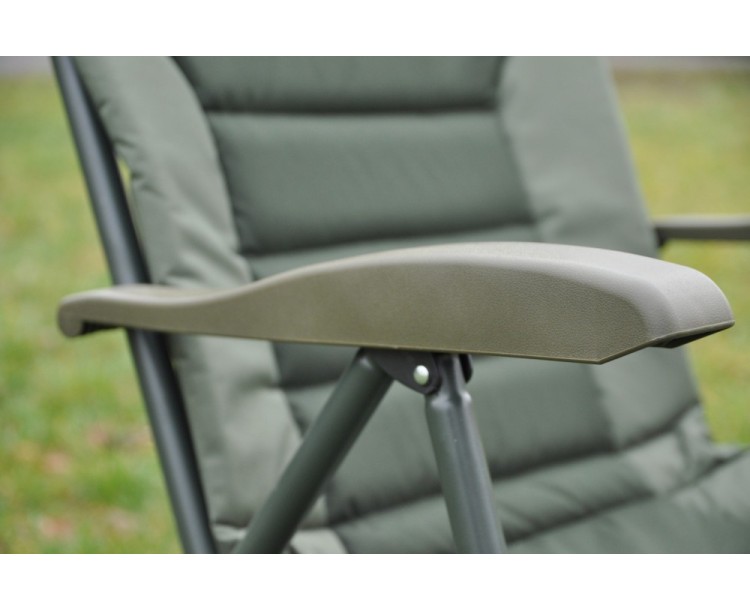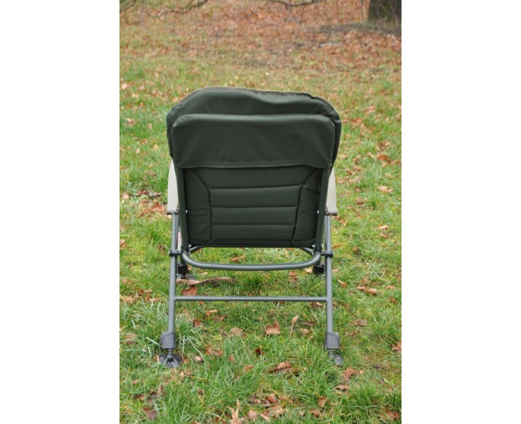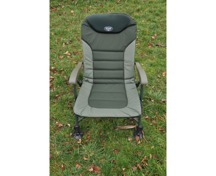 Žhavá novinka, která plní opakovaná přání našich zákazníků. Luxusní, pohodlné křeslo s anatomicky tvarovaným opěradlem a silně polstrovaným neoprenovým polštářem. Všechny čtyři nohy jsou teleskopické, vybavené spolehlivou aretací a velkými patkami proti zaboření. Konstrukce je stabilní, překvapivě lehká a velmi pevná (nosnost 160 kg). Křeslo nabízí pohodlný systém naklápění opěradla při nadzdvižení opěrek na ruce.