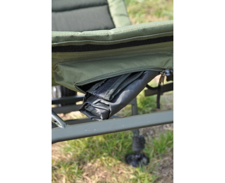 Unikátní kombinace luxusního křesla typu „recliner“ a lehátka s vysokou stabilitou a nízkou hmotností. Vše je vyrobeno z materiálů shodných s nejvyššími modely lehátek. Matrace je z materiálu „M850 soft-touch“, který je nepřekonatelný ve snadnosti údržby a svými výbornými izolačními schopnostmi. Přední část je ke křeslu připojena pomocí zámků z pevnostního plastu a jištěna silným kovovým zipem. Všech 6 nohou celého kompletu je teleskopických a doplněných širokými výkyvnými patkami proti zaboření.