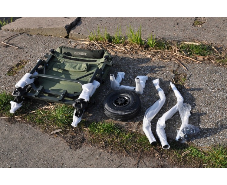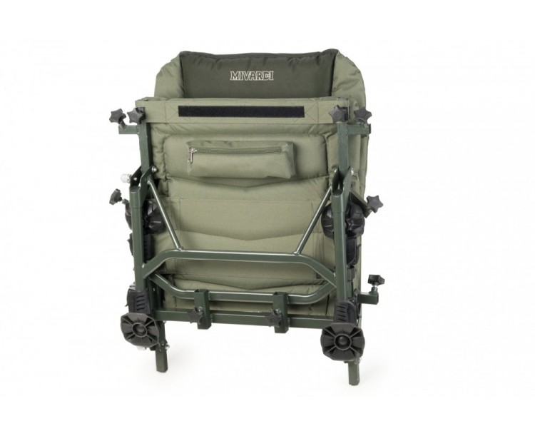 Značkou Mivardi od základu navržené multifunkční křeslo s prodlouženým opěradlem a důmyslným systémem volitelných bočních adaptérů na stolky, držáky a další příslušenství. Ty mohou být umístěny až v osmi různých pozicích po obvodu křesla. Čtyři teleskopické nohy jsou osazeny velkými patkami proti zaboření. Z křesla lze během okamžiku vytvořit robustní přepravní vozík s nafukovacím kolem a dvěma rukojeťmi. Součástí dodávky je omyvatelný ochranný návlek na matraci a jeden boční adaptér na příslušenství. Křeslo i vozík mají nosnost 150kg.