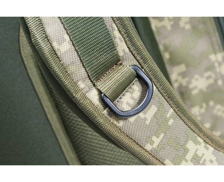 Precizně zpracovaná přepravní taška v atraktivním designu digitálního maskáče s prostornými bočními kapsami. Tvrzené víko slouží jako stolek na drobné příslušenství. Luxusní polstrovaný popruh umožňuje pohodlné nošení přes rameno.