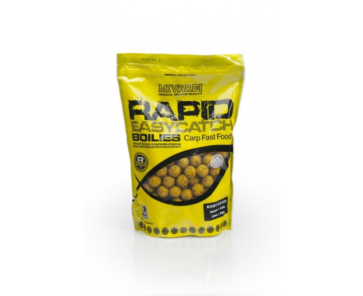 Úplně nová řada boilies Rapid. Tyto rychle působící nástrahy fungují i při krátkých, jednodenních vycházkách. Stejně tak je můžete požít v situacích, kdy ryby nejsou příliš aktivní. Složení mixu a vysoký podíl extrudovaných složek podporuje práci ve studené vodě. Kvalitní esence a výrazné barvy zajišťují vysokou atraktivitu i bez použití boosterů. Optimální konzistence a použití R-FACTORu umožňují snadné nastražení (propíchnutí) a zároveň velkou výdrž.