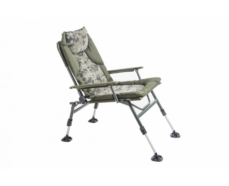 Unikátní superlehké křeslo z inovativního materiálu Duralite a extrémně pohodlnou, silně polstrovanou matrací v designu digitálního maskáče. Jeho velkou výhodou je miniaturní kloub umožňující nastavení sklonu opěradla. Pevné opěrky rukou s neoprenovým potahem zvyšují celkovou pevnost křesla a zároveň jsou velmi pohodlné. Na křesle jsou použity nejkvalitnější typy zámků výsuvu nohou i patek proti zaboření. Přes nízkou hmotnost a malé přepravní rozměry se jedná o plnohodnotné křeslo, vhodné i pro dlouhodobé sezení.