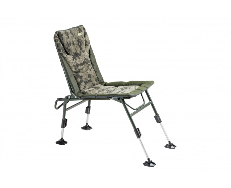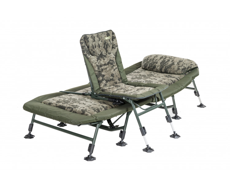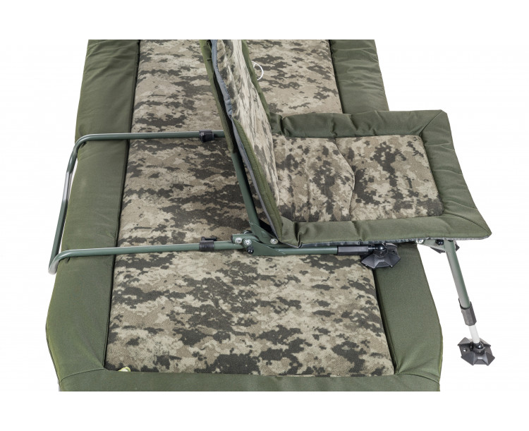 Toto unikátně navržené křeslo umožňuje běžné použití jako lehké a rychle rozložitelné křeslo střední velikosti se čtyřmi teleskopickými nohami. Během několika vteřin jej lze upravit pro umístění zadní stranou na lehátku se spacákem. Speciálně tvarovaná zadní část rámu dosedá na lehátko celou plochou a brání tak lokálnímu poškození výplně spacáku nebo matrace lehátka. Křeslo je vybaveno silným polstrováním pohodlným fleece potahem v unikátním CamoCODE designu. Je osazeno samovýsuvnými nohami a výkyvnými patkami proti zaboření.
