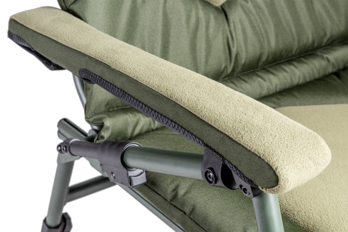 Velké a pohodlné rybářské křeslo, které je silně polstrované a je vybaveno loketními opěrkami. Oblast hlavy a ledvin je polstrována extra silně. Má hliníkové, výškově nastavitelné nohy zakončené koncovkami proti zaboření. Křeslo je vyrobeno z600D polyesteru, který odpuzuje vodu a nečistoty. Součástí dodávky je i praktická odkládací plocha (stoleček) o rozměrech 18 x 40 cm, který lze přišroubovat na bok. Pohodlný sedák a extra vysoké opěradlo zaručuje naprostý komfort. Nosnost je 170kg.materiál: zesílený rám, hliníkové nohy a vodu odpuzující 600 D polyesterhliníkové, výškově nastavitelné nohy zakončené koncovkami proti zabořeníextra vysoké opěradlo: 53 x 85 cmvýškově nastavitelné sedadlo: 35-55cmrozměry sedáku: cca 54 x 53 cmsilně polstrované oblasti hlavy a oblasti ledvinneoprenové potahy loketní opěrkyodkládací plocha: 18 x 40 cmpřepravní rozměry: 100 x 67 x 15 cmhmotnost: 7,2 kgnosnost: 170kg