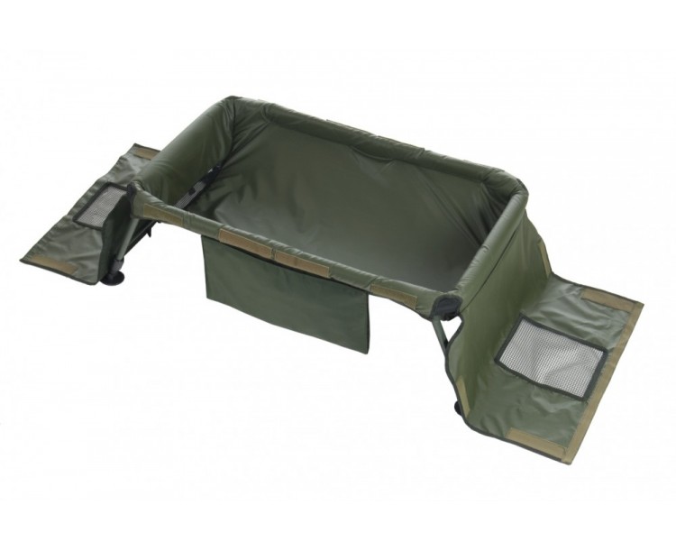 Nekompromisní řešení v péči o váš úlovek. Prostorná vanička s trubkovým rámem a čtyřmi teleskopickými nohami pro bezpečné položení úlovku i ve členitém terénu a jeho odháčkování a ošetření. Důmyslně řešené víko umožňuje rychlé uzavření vaničky a napomáhá zklidnění ryby zakrytím její hlavy. Zároveň umožňuje polévání ryby vodou přes pogumovanou mřížku. Voda odtéká otvory na obou čelech. Vanička je doplněna polstrovanou podložkou na klečení při focení a další manipulaci s rybou. Velkou výhodou je minimální transportní velikost složené vaničky.