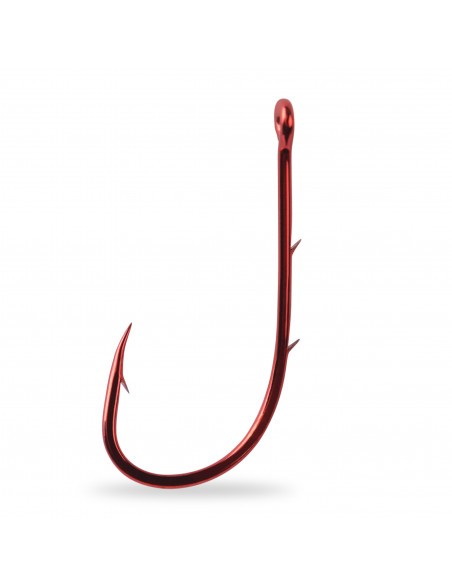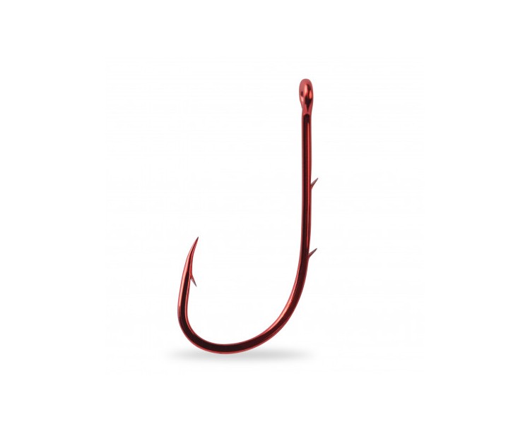 Háček světoznámého výrobce Mustad s dlouhým ramínkem opatřený trny pro perfektní uchycení žívé nástrahy. Vyhlý a extra ostrý hrot pro zlepšení záseku. Háček je vyrobený z pevného drátu pro vysokou odolnost. Finální červená úprava pro lepší dráždivost.