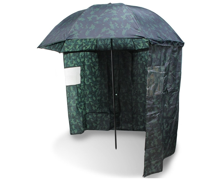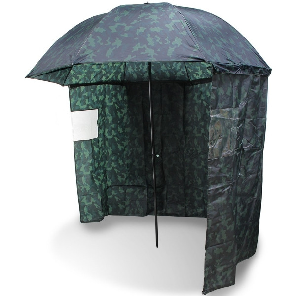 Nový, velmi propracovaný kamuflážní deštník s nastavitelným kloubem, bočními okny a odnímatelnou bočnicí na zip.