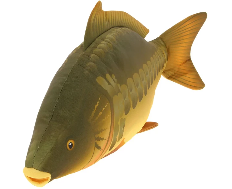 Tento 70cm plyšový polštář je navržen tak, aby věrně imitoval vzhled kapra, což z něj činí ideální doplněk pro rybáře i milovníky rybářského vybavení.