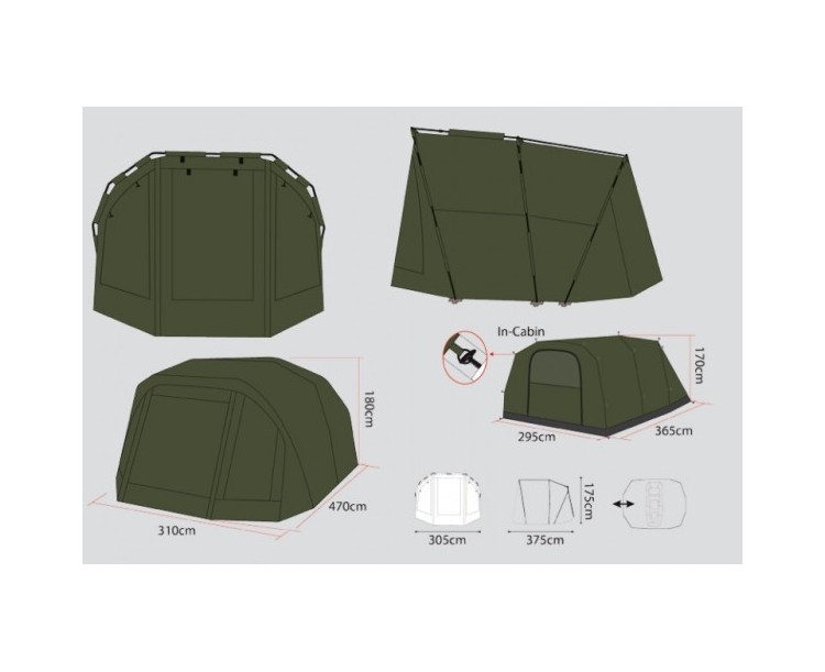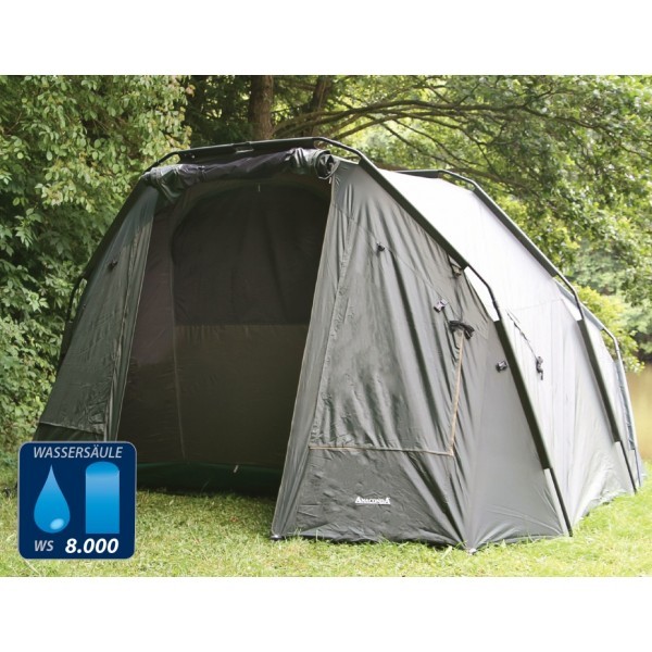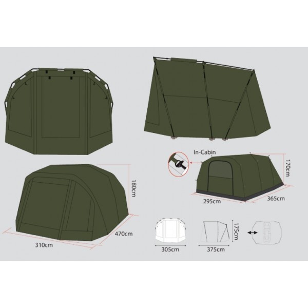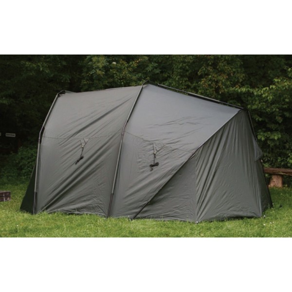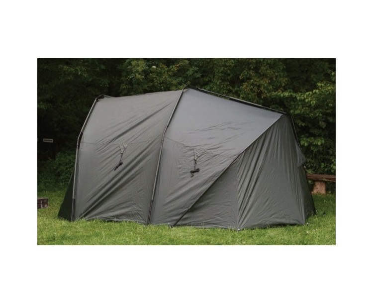 Velmi propracovaný bivak, který byl pečlivě vyvíjen s ohledem na maximální komfort u vody. Velký důraz, byl kladen na maximální odvětrání bivaku, které je velmi důležité v horkých letních měsících. Přístřešek trubkové konstrukce, která se skládá ze tří žeber a o výztuhu se starají rozpěrné tyče. Na tento bivak, byl použit vodě odolný materiál 5 000mm HH, té nejvyšší kvality, který je 100% nepromokavý. Páskou podlepené švy a ukotvení na zavrtávací kolíky, které jsou v ceně přístřešku. Bivak je vybaven větracím systémem jak v přední části, tak velkým oknem v zadní části, které zajistí maximální odvětrání. Velký přední kšilt nad vchodem, je navíc osazen dvěma praktickými úchyty na pruty. Přední vchodová část má, tři výměnné panely na suchý zip, celo zakrytá, nebo slídová a moskytiéra. Další vychytávkou tohoto bivaku je, že v nepřízni počasí můžete ve vchodové části vytvořit okénko, díky použití dvojitých jezdců zipu. Další praktická věc, celí přední panel lze odepnout pomocí zipu a máte otevřený přístřešek. Přístřešek je dodáván s podlážkou, která se k bivaku připne pomocí suchých zipů. Pro lepší a snadnou orientaci osazení podlážky do bivaku, jsme nechali našít 3D označení vstupu. Součástí bivaku je přepravní nylonová taška. Rozměry: Délka: 248cm Šířka: 308cm Výška: 150cm Hmotnost: 10kg Transportní rozměr: 110x20x20cm