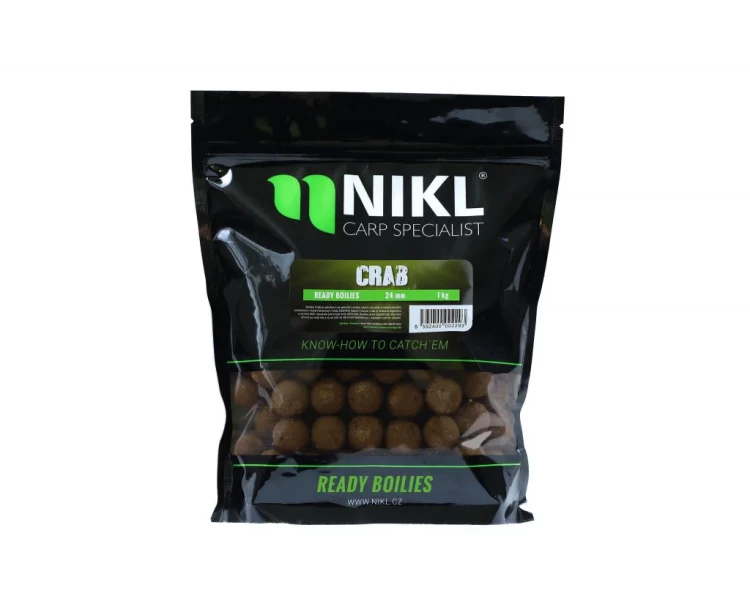 Boilies Crab je založeno na kvalitních rostlinných moučkách s vyšším podílem konopné mouky. Podstatnou součástí jsou také masové a rybí moučky a hlavně vysoká dávka aromatické krabí esence, která je pro kapry přirozeně přitažlivá. Boilies je navrženo tak, aby se rychleji rozpouštělo a tím se do vody postupně uvolňovaly moučky a esence.