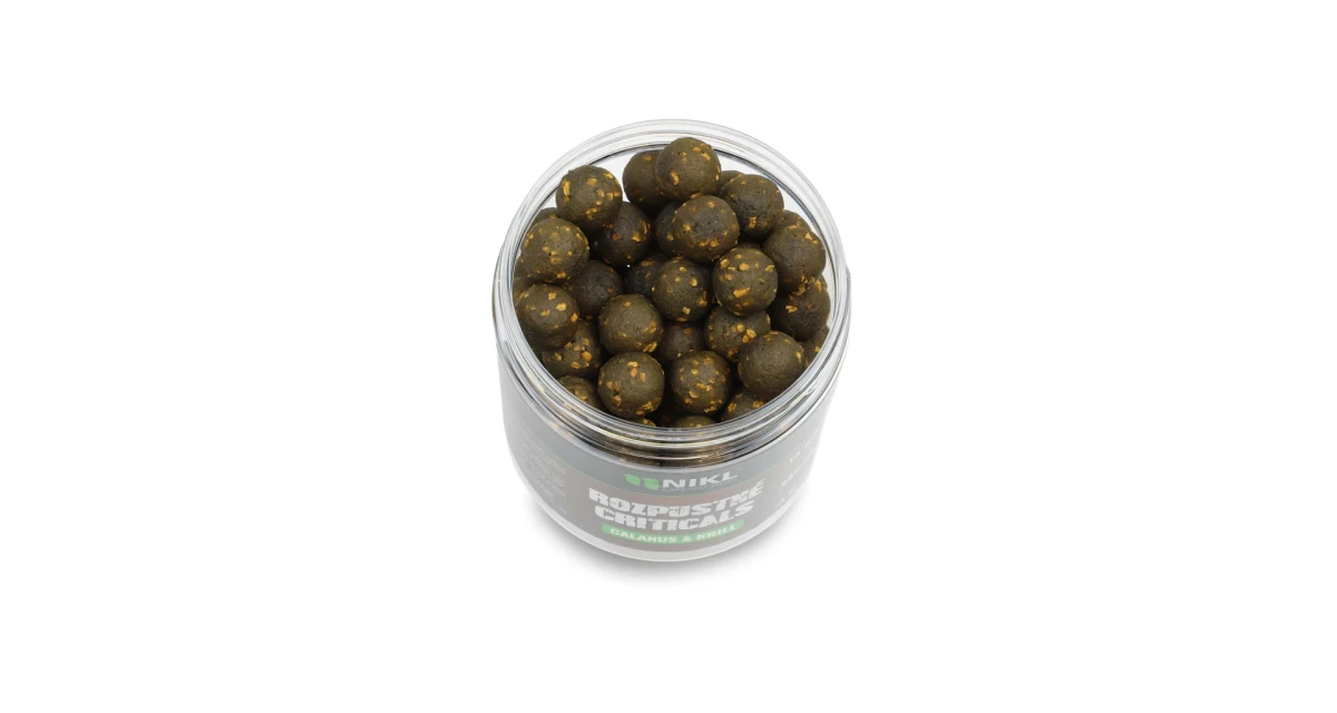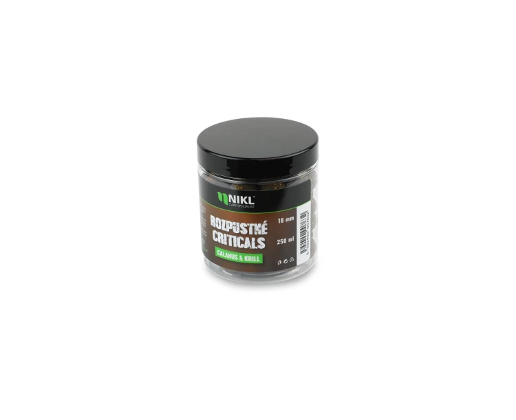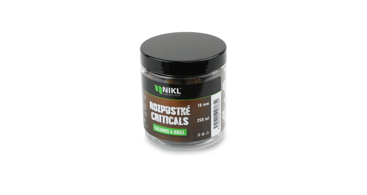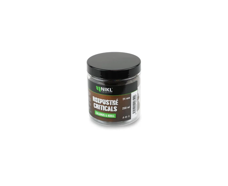 Rozpustné Criticals boilie Calanus & Krill v balení 250 ml. Skvělá nástraha určená výhradně pod háček, navržená pro záběr v co nejkratším čase. Po několika minutách ve vodě se začne pozvolna rozpouštět a uvolňovat esence, atraktory a moučky, což je pro kapry velmi přitažlivé a často způsobí, že při krmení sáhnou po nástraze dříve než po ostatním krmení. Kolem montáže postupně vytváří stabilní potravní signál, který se šíří přirozeně a drží pozornost ryb přímo u nástrahy i v náročných podmínkách nebo na tlakových vodách.