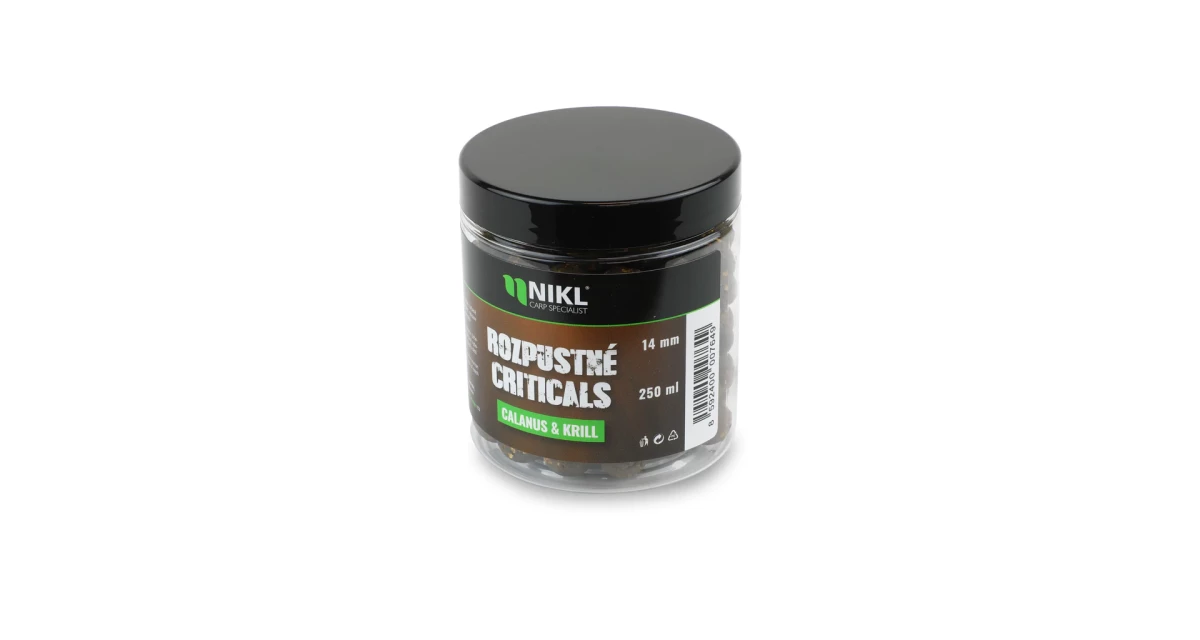 Rozpustné Criticals boilie Calanus & Krill v balení 250 ml. Skvělá nástraha určená výhradně pod háček, navržená pro záběr v co nejkratším čase. Po několika minutách ve vodě se začne pozvolna rozpouštět a uvolňovat esence, atraktory a moučky, což je pro kapry velmi přitažlivé a často způsobí, že při krmení sáhnou po nástraze dříve než po ostatním krmení. Kolem montáže postupně vytváří stabilní potravní signál, který se šíří přirozeně a drží pozornost ryb přímo u nástrahy i v náročných podmínkách nebo na tlakových vodách.