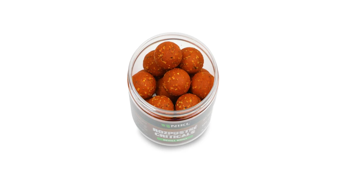Profil Devill Krill staví na intenzivním masovém signálu s výraznou krillovou složkou, takže je pro kapry silně čitelný a dokáže vyprovokovat reakci i ve chvílích nižší aktivity. Kuličky jsou odlehčené drceným korkem, takže jsou kriticky vyvážené a zůstávají lehce nad dnem, což usnadňuje nasátí a často rozhoduje u opatrných kaprů. Ideální pro závodní rybařinu, kdy rozhodují minuty; průměry: 14, 18 a 24 mm, balení: 250 ml.