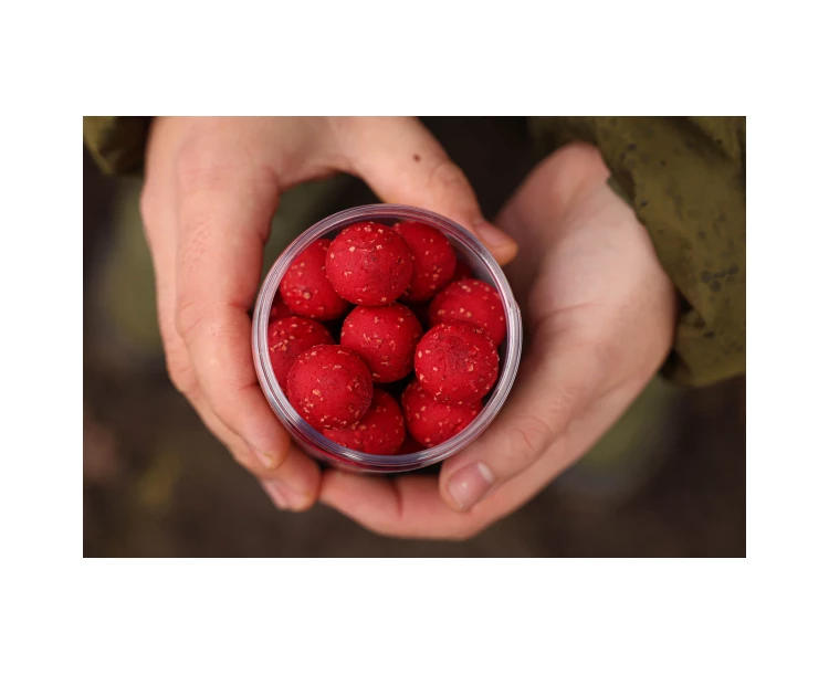 Profil Gigantica je typický svým výrazným kořeněně-masovým charakterem, který kapři velmi dobře registrují a reagují na něj i při nižší aktivitě. Kuličky jsou odlehčené drceným korkem, takže jsou kriticky vyvážené a zůstávají lehce nad dnem, což usnadňuje nasátí a často rozhoduje u opatrných kaprů. Ideální pro závodní rybařinu, kdy rozhodují minuty; průměry: 14, 18 a 24 mm, balení: 250 ml.