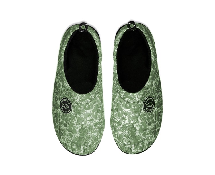 Od počátku vývoje tohoto produktu bylo naším záměrem přinést designově jedinečné vsuvky, které budou splňovat požadavky rybářů na maximální funkčnost a komfort během nošení nejen na rybách, ale i v běžném životě. A výsledek? Delphin OCTO - ultra lehké pantofle z EVA pěny, inspirované přírodou, kompletně navrženy a vyráběny v Evropské unii! Vzhledem k tomu, že během rybolovu je nutné často chodit po nerovném terénu, jsme se při vývoji zaměřili na podešev, která je podstatně pevnější a masivnější ve srovnání s levnějšími konkurenčními modely. Právě to zaručuje, že chození v těchto vsuvkách bude maximálně komfortní a dokonale odfiltruje nerovnosti terénu. Při podešvi ještě chvíli zůstaneme. Právě tam začíná příběh názvu OCTO. Stylizovali jsme ji totiž do tvaru přísavek chapadel chobotnice, což zaručuje výborný grip za každých podmínek. Právě chobotnice, anglicky OCTOpus, anebo latinsky OCTOpod byly inspirací pro kompletní design a název ve zkrácené forme - OCTO. Dalším sofistikovaným prvkem jsou velké postranní otvory, jejichž prioritním úkolem je starat se o odvětrávání a celkovou vzdušnost v této obuvi. Záměrně nejsou navrženy ve výši podrážky, jak to bývá standardem, ale o něco výše. Právě tento detail hraje významnou roli během pobytu na břehu, či mělké vodě. Tím, že otvory jsou o něco vyšší nad vnitřní stélkou je téměř eliminováno nechtěné nabírání písku či kamínků mezi podrážku a chodilo. Vaše chodidla jsou tedy chráněny v maximální možné míře. Kromě těchto otvorů slouží k odvětrávání hustá perforace umístěna ve vrchní části. Ta je záměrně vytvarována na jedné straně do symbolu D z loga Delphin, na druhé vsuvce zase kraluje symbol O, jako počáteční písmeno názvu OCTO. Celkový dojem ještě zhodnocuje jemná struktura na povrchu pantoflí, která evokuje kůži chobotnice. Díky použitému EVA materiálu jsou mimořádně lehké, houževnaté a dokonce plovoucí. Samozřejmostí je u tohoto modelu poutko na fixaci paty (lidově nazývané i uzávěrka), které oceníte zejména v nerovné, či svahovitejšom terénu. Delphin OCTO jsou jednoduše stylovou letní obuví, jedinečného designu, s velmi širokým využitím. Ať už potřebujete přezůvky do interiéru, jít na ryby, vykoupat se, neboli do města. OCTO jsou tu aby vás převedli všemi nástrahami dne komfortně a s lehkostí. Jediným mínusem je, že nejsou vhodné pro vysokohorskou turistiku, to však díky ostatní všestrannosti určitě oželíte :) Jelikož jsou pantofle vyrobeny z EVA materiálu, vedle množství výhod třeba dbát i na péči o tento materiál. Nenechávejte ho proto vystaven dlouhodobě přímému prudkému slunečnímu záření na rozpálených kamenech či betonu. Právě tam může teplota atakovat až 50 stupňů Celsia, což může způsobit jemné tvarové deformace. Samozřejmě, pokud jsou pantofle na nohách, k takovému jevu nedochází a životnost se počítá na roky.